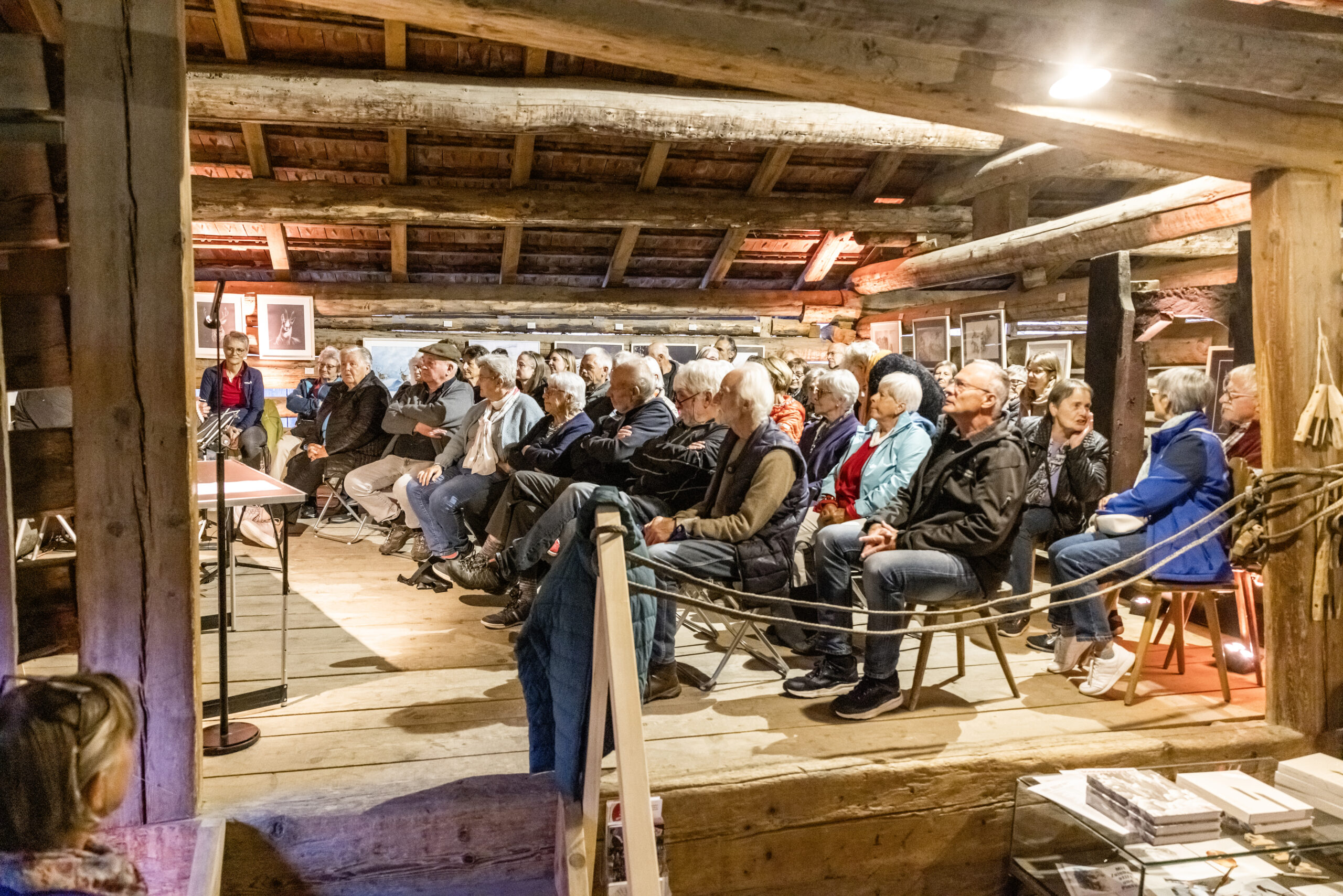 Sut igl tetg da la Tgea da Schons e vagnieu preligieu margis sera egn necrolog, a tres voluntaris ân rezito egna selecziùn da poeseias ca l’autura Silvia Mark-Castelberg veva scret. Igl davos ân las visitadras ad igls visitaders gieu la pussevladad da raquintar lur mimorgias da l’autura.